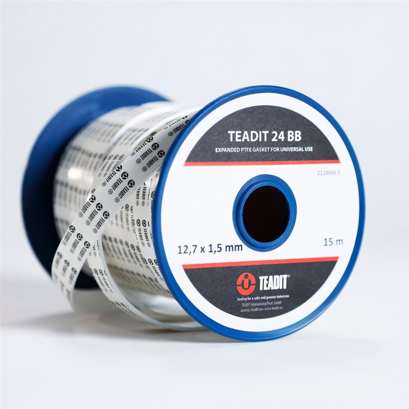 泰迪TEADIT 24BB膨体四氟接缝宽密封带 是一种由纯膨体聚四氟乙烯制成的垫片材料。TEADIT 拥有通过 DIN EN ISO 9001 和 DIN EN ISO 14001 认证的质量和环境管理体系。