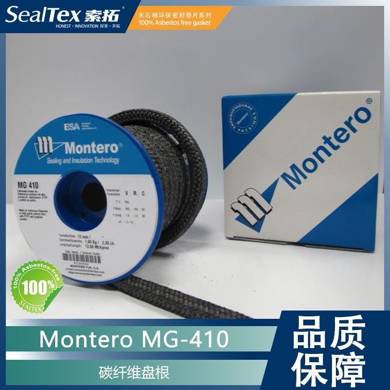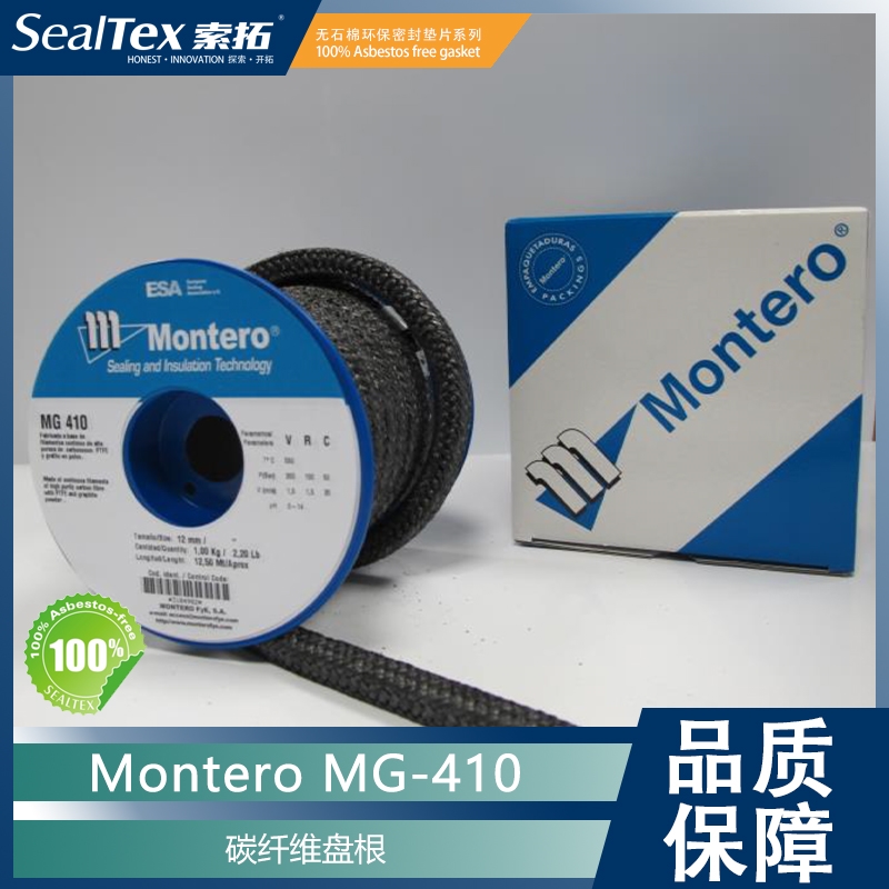 BELPA/标牌盘根系列MONTERO FyE S.A.公司生产的填料MG-410,采用高纯度(>95%)的碳石墨连续长丝纱线,内含石墨粉以提高润滑性。