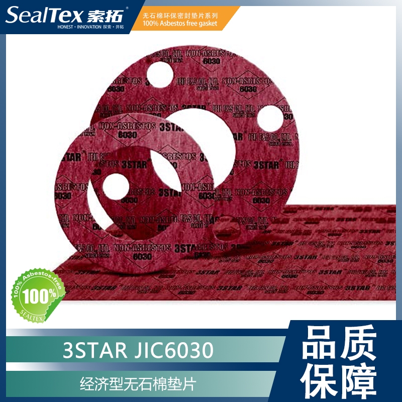 3STAR JIC6030 经济型无石棉密封垫片,由高质量的纤维与合成橡胶材料复合而成。特别是在水、温和的酸和碱以及建筑消防管道下的加工和密封性能方面表现出良好的质量。